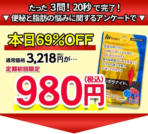 年齢とともに気にはしているものの、ふと気づくと脂肪がつきやすく。何か始めないと!と思っている時に知ったのがシボラナイトプレミアム。